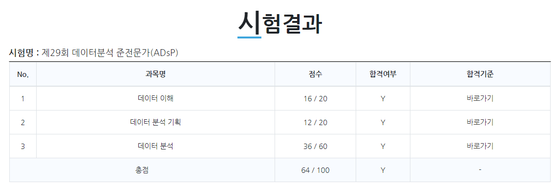 공부한 내용을 까먹기 전에 비슷한 과목인 'ADsP' 시험에 응시했다.